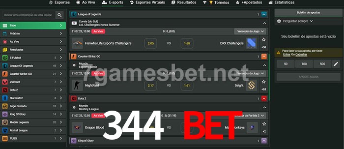 O 344 bet oferece uma grande seleção de opções de apostas em e-sports com probabilidades competitivas